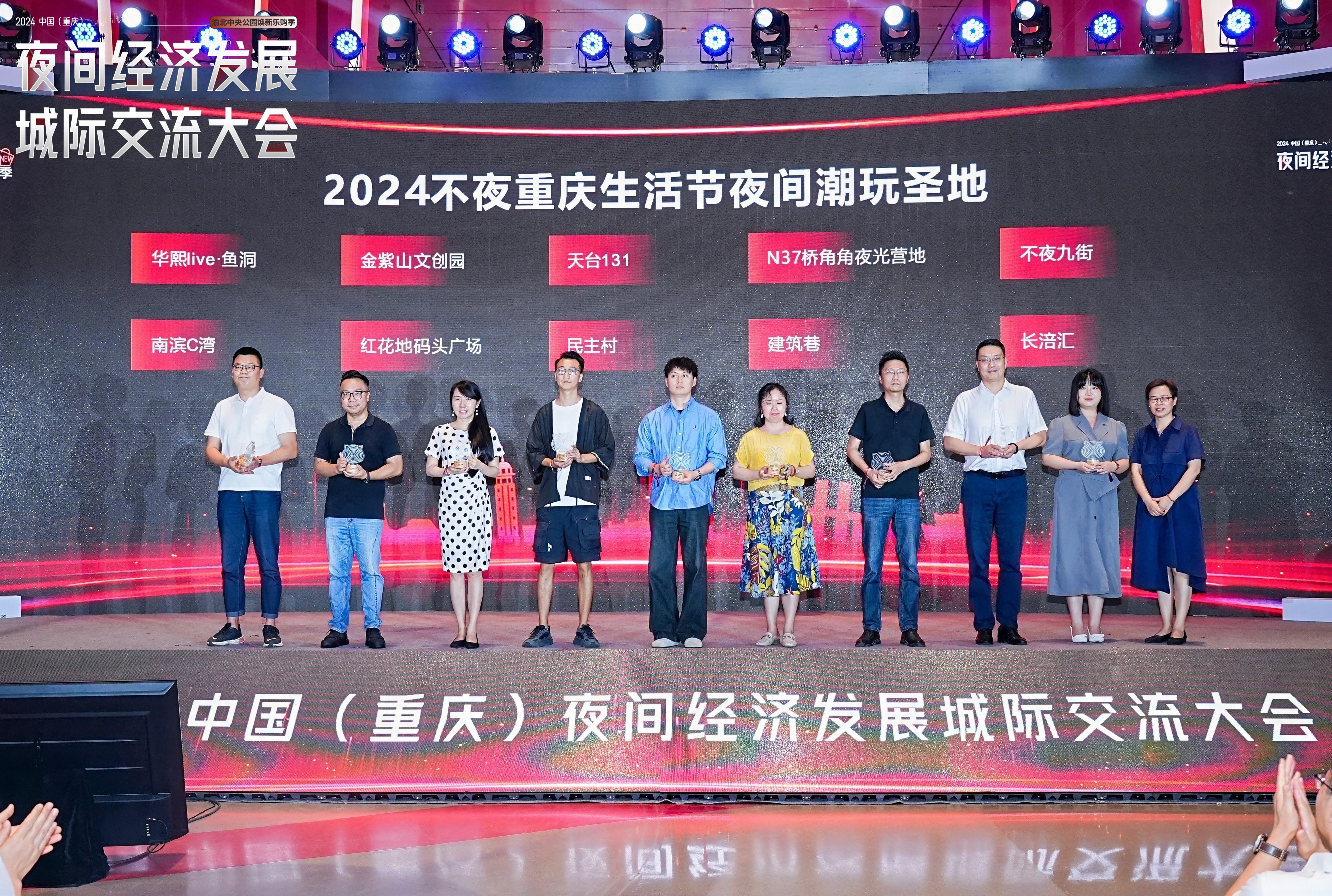 9月20日,,,,,,,,由重庆市商务委员会、重庆市文化和旅游发展委员会、重庆市体育局、渝北区人民政府、重庆夜间经济发展联合会共同主办的2024中国(重庆)夜间经济发展城际交流大会在渝北举行。。。。。。。。在本次交流大会中,集团所属金紫山文创园荣获“2024不夜重庆生活节夜间潮玩圣地”称号。。。。。。。。